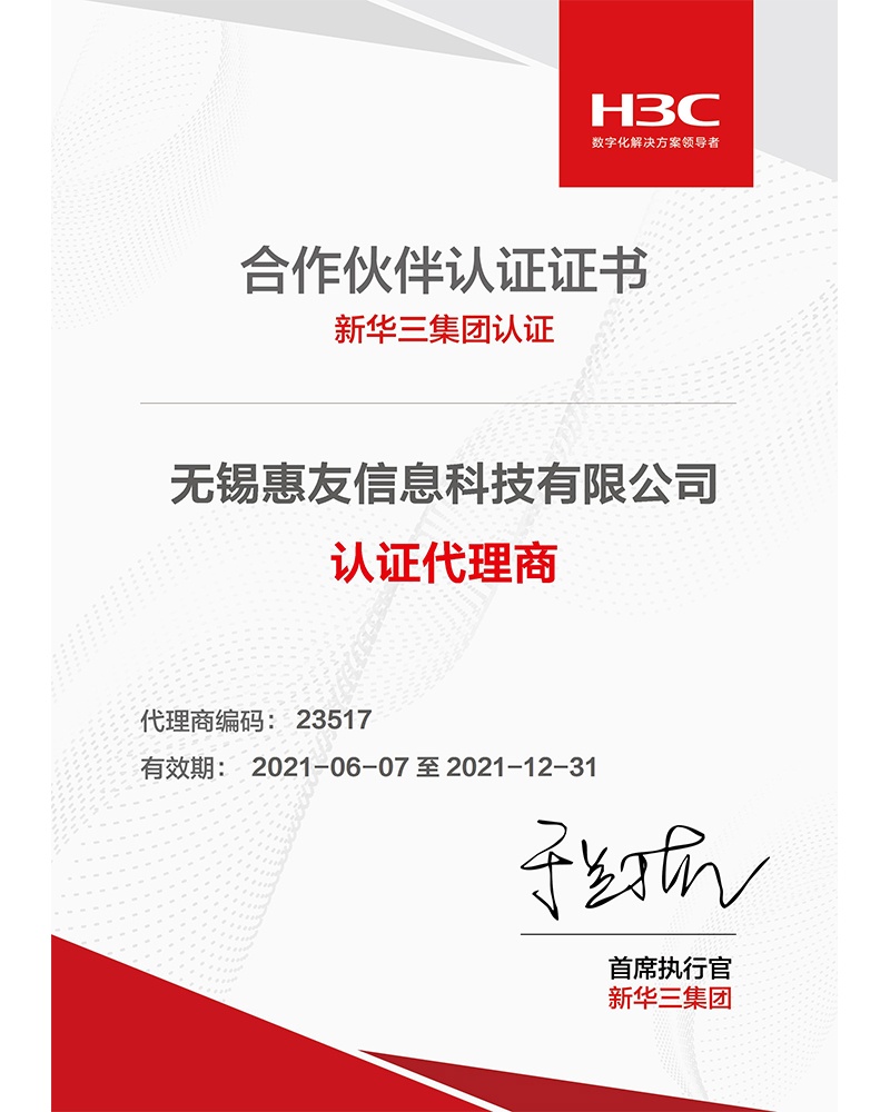 新華三集團合作伙伴認證證書