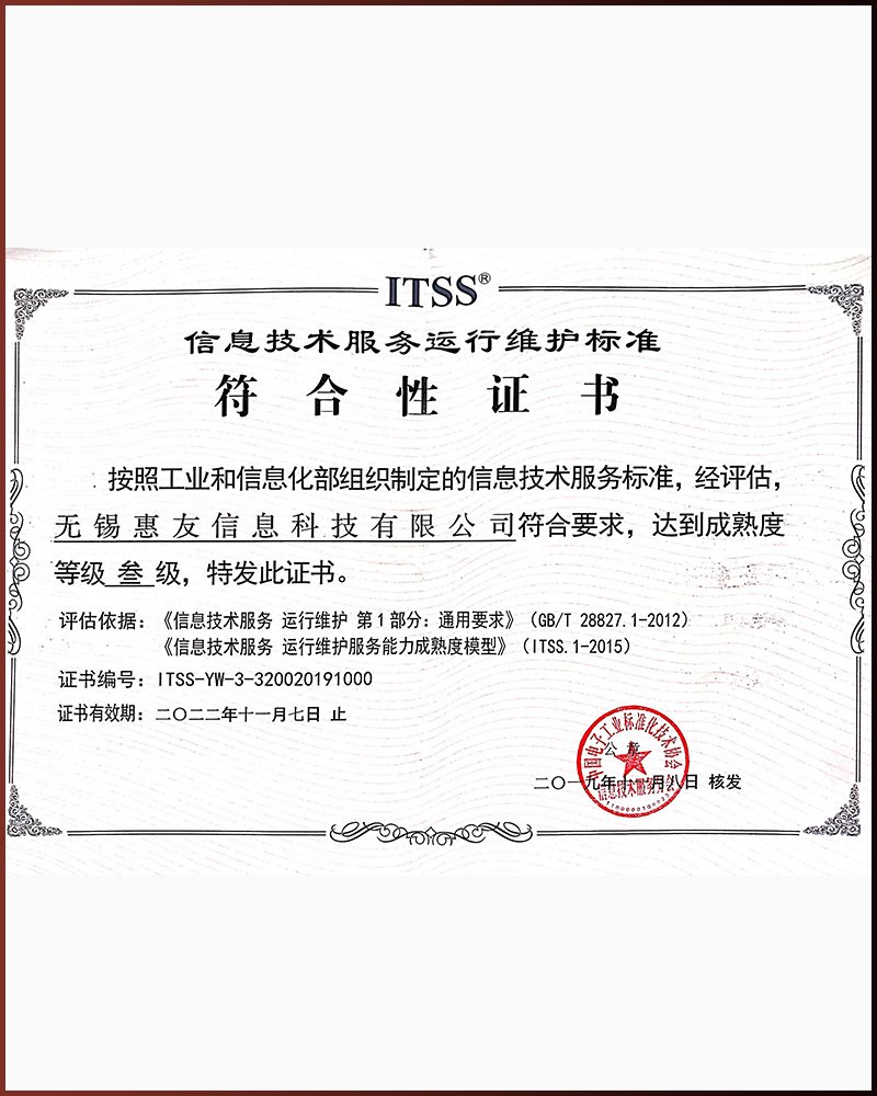 信息技術(shù)服務(wù)運(yùn)行維護(hù)標(biāo)準(zhǔn)符合性證書