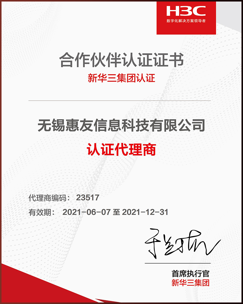 新華三集團(tuán)合作伙伴認(rèn)證證書