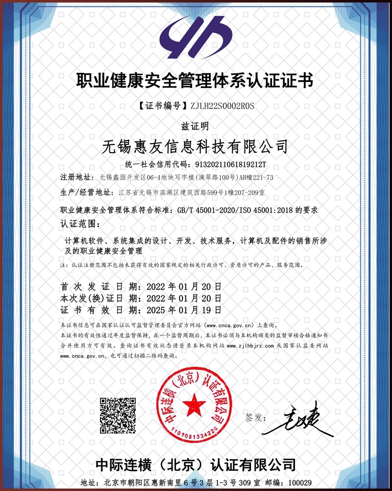 職業(yè)健康安全管理體系認(rèn)證證書[OHSMS]